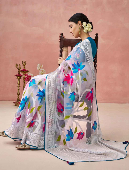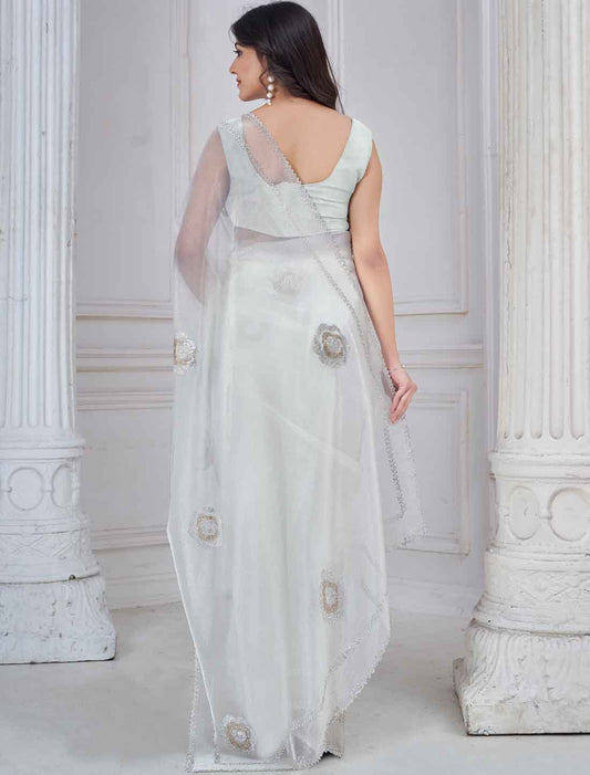 White Supreme Organza Party Wear Two Tone Work Ethnic Saree
