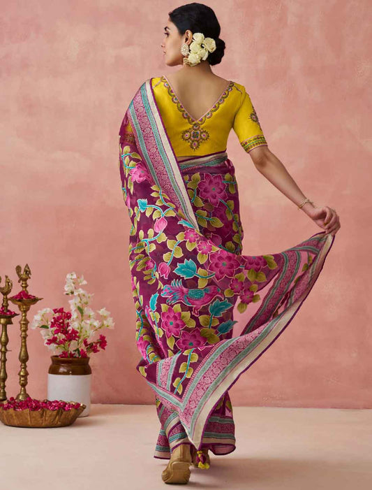 Elegance Soft Brasso Organza With Ethnic Printed Saree