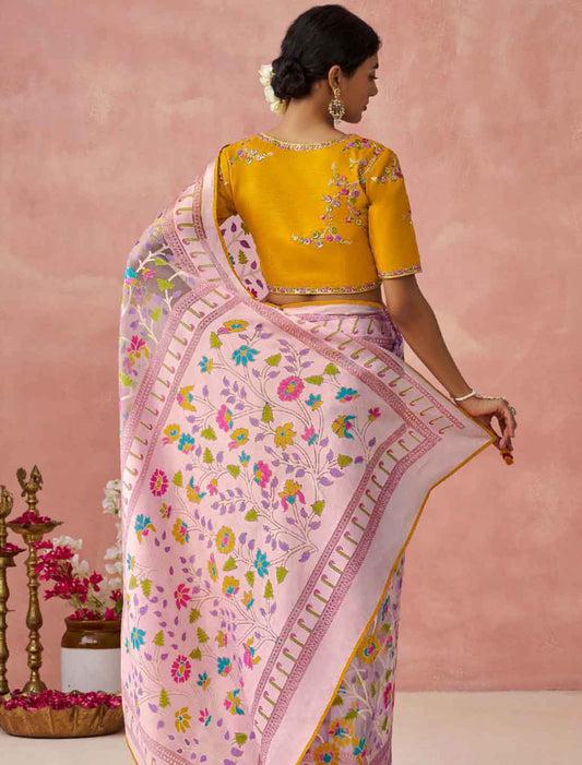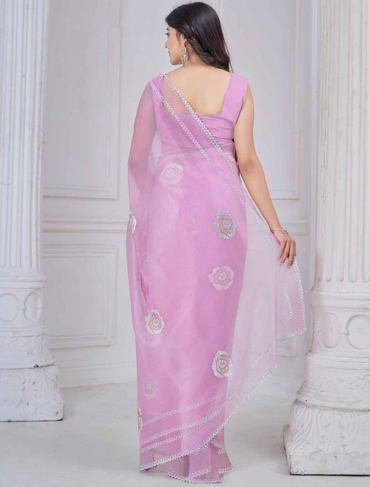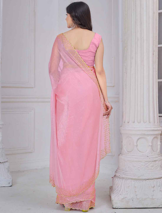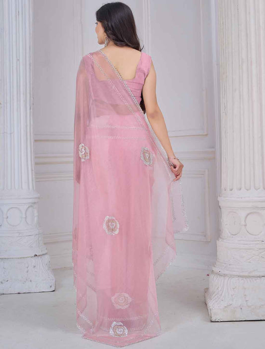 Light Pink Ethnic Party Wear Organza Traditional Saree