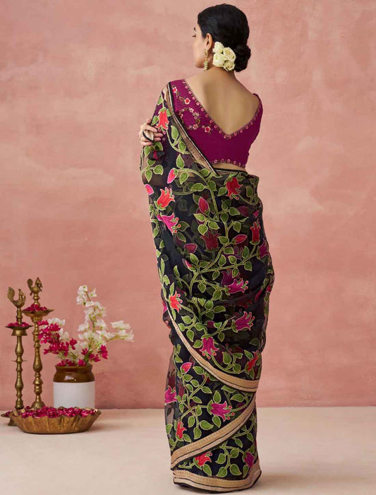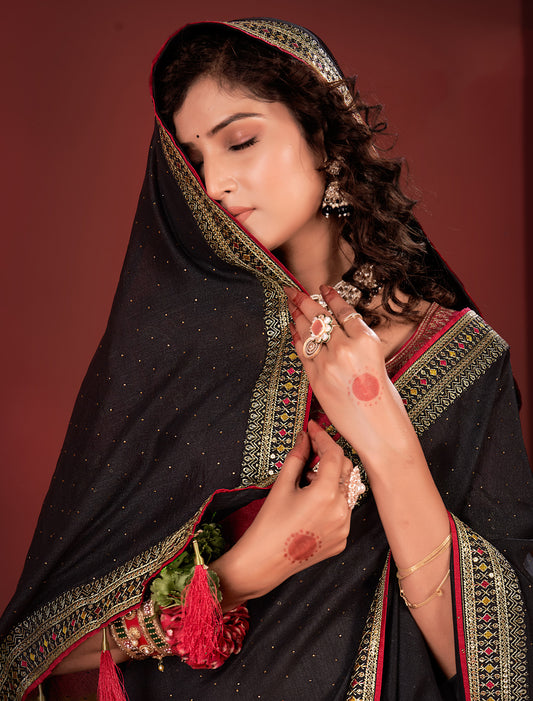 Black Equisite Ethnic Designer Saree Heavy Border For Women