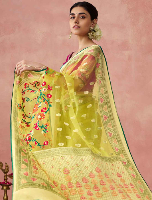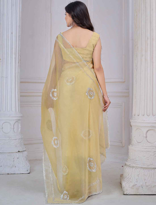 Light Yellow Ethnic Supreme Organza Party Wear Saree