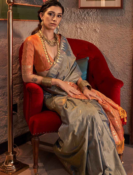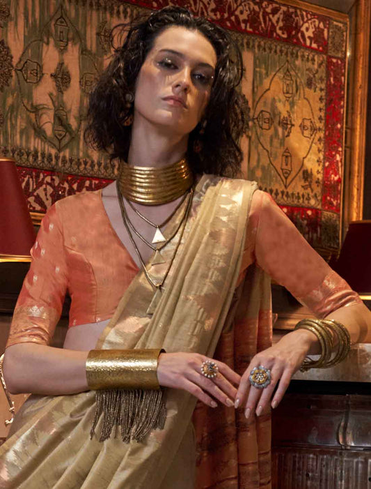 luxury Designer Tussar Silk Hadloom Weaving Ethnic Saree