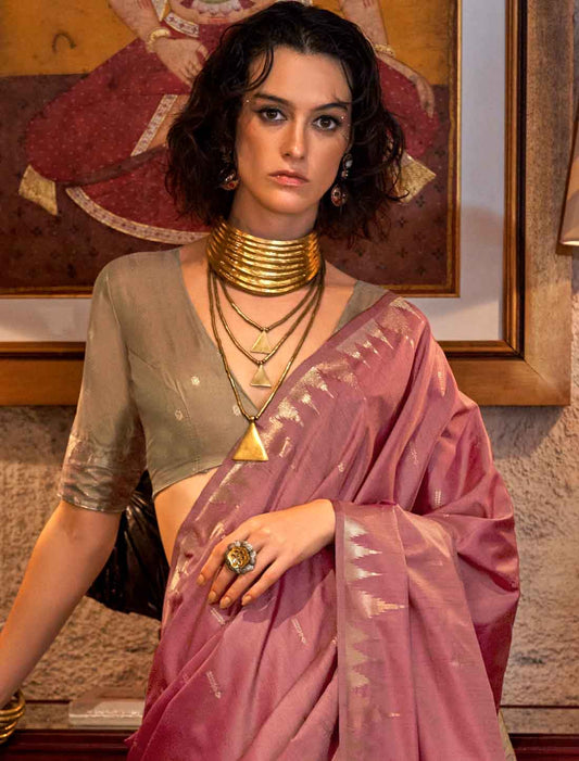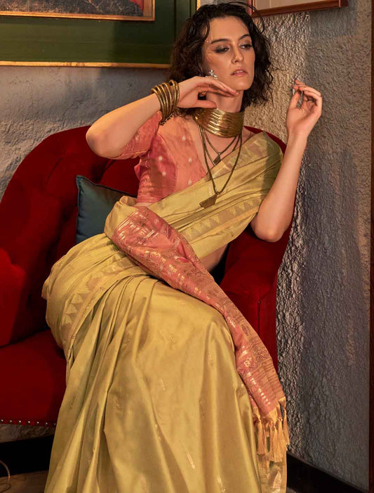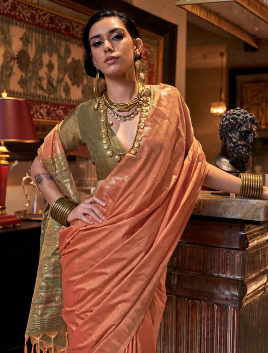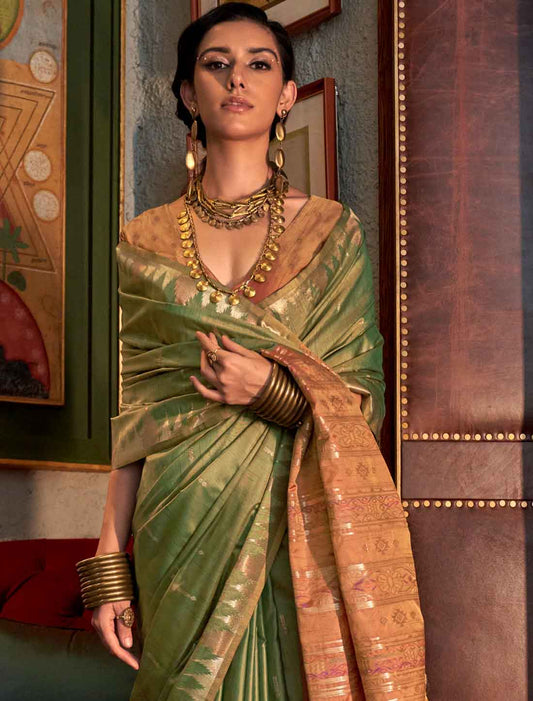 Luxurious Ethnic Tussar Silk Hadloom Weaving Designer Saree