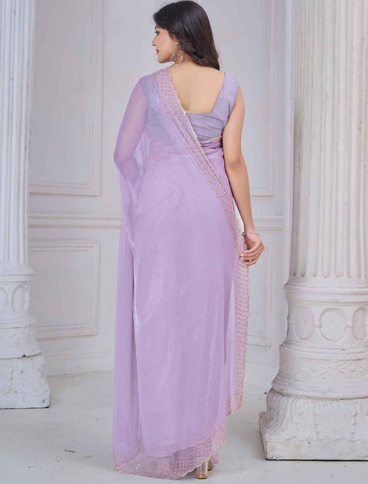 Lavender Soft Art Silk Ethnic Hand Work With Jerquen Party Wear Saree
