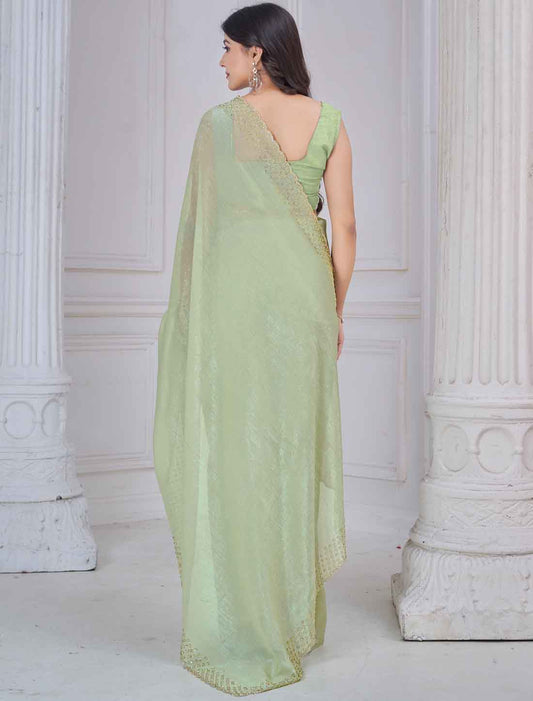 Pista Green Ethnic Soft Silk Hand Work Party Wear Saree