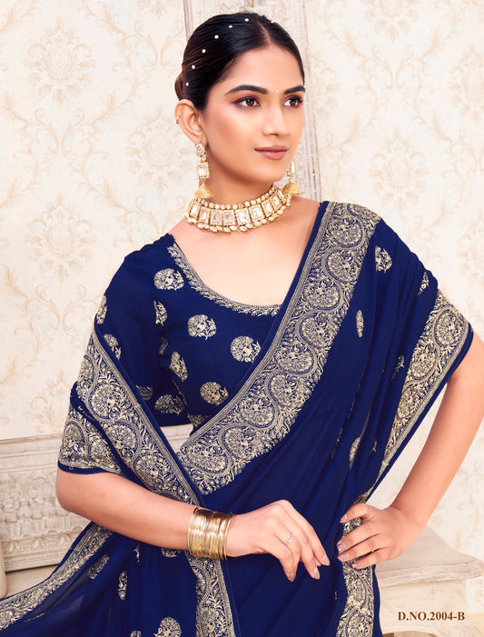Ethnic Blue Soft Silk Hand Work With Jerquen Party Wear Saree