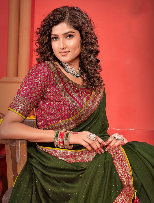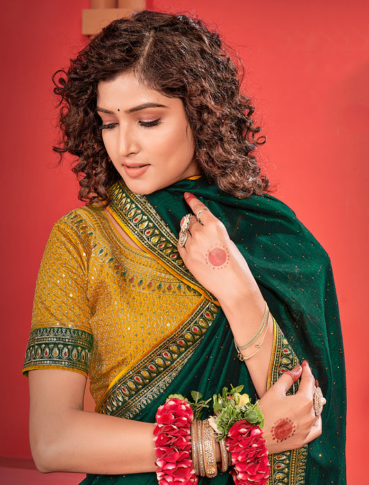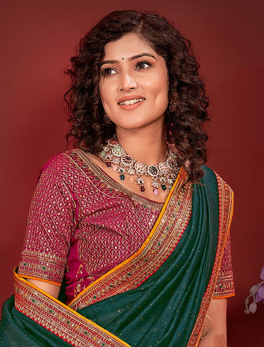 Stunning Ethnic Green Saree With Heavy Work Blouse And Border