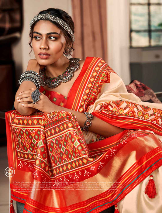 Pure Tusser With Patola Print UnStitched Ethnic Saree