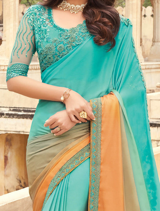 Kasab Georgette Silk TFH Sandal Wood Party Wear Designer Saree For Women