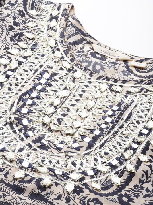 Divena Cream Floral Printed Kurta Sharara With Dupatta Set
