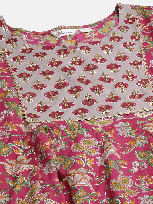 Divena Lilac Floral Printed Anarkali Kurta Pant set with Dupatta
