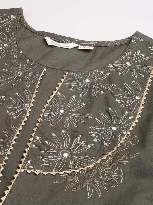 Divena Olive Green Hand Block Cotton Kurta Pant Set with Dupatta