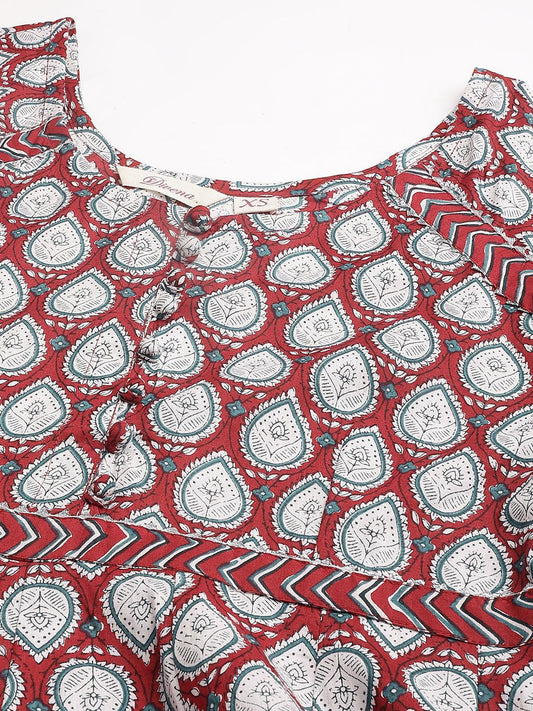 Divena Maroon Cotton Anakali Kurta pant set with Dupatta