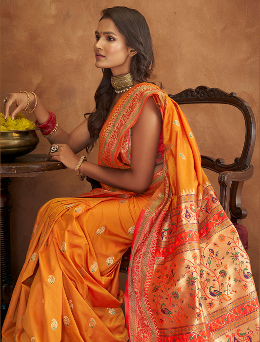 Golden Aura Modal Flat Zari Handloom Weaving Women Saree Ensemble
