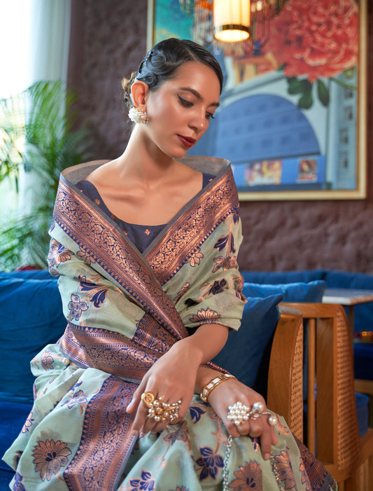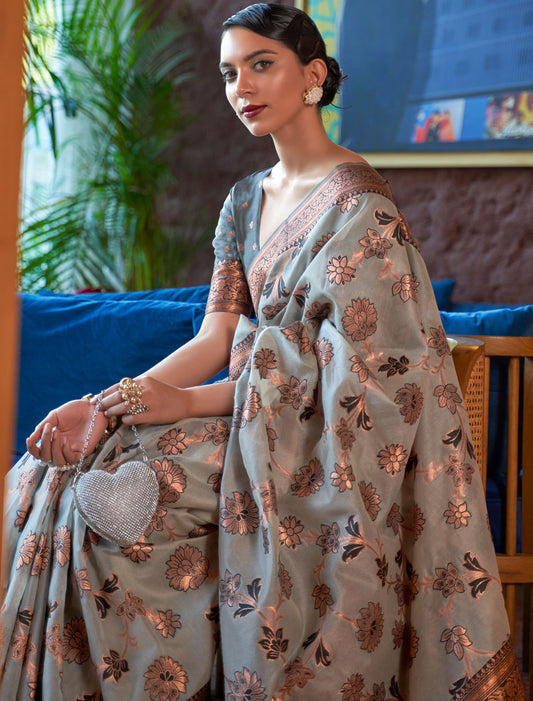 Regal Designer Weaving Copper Zari Shimmer Organza Saree