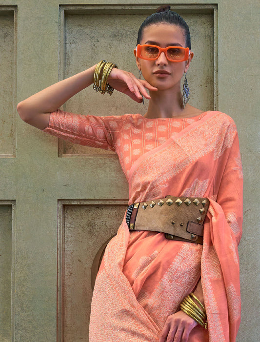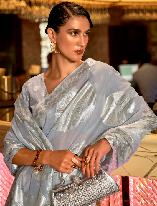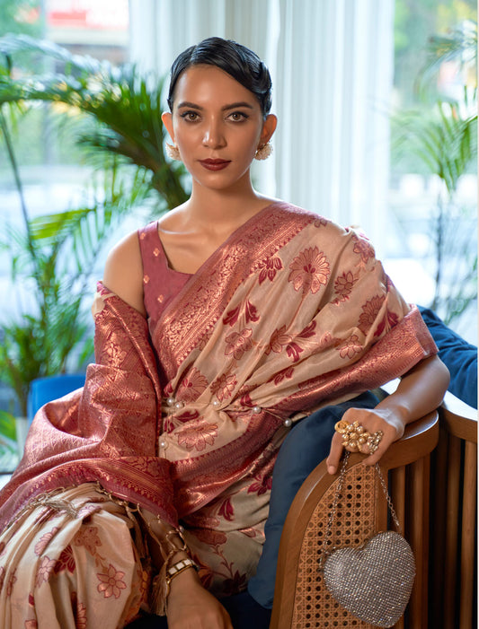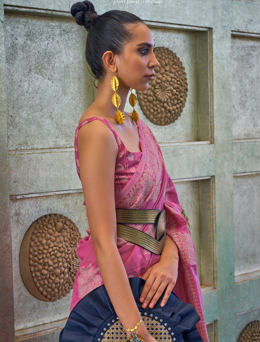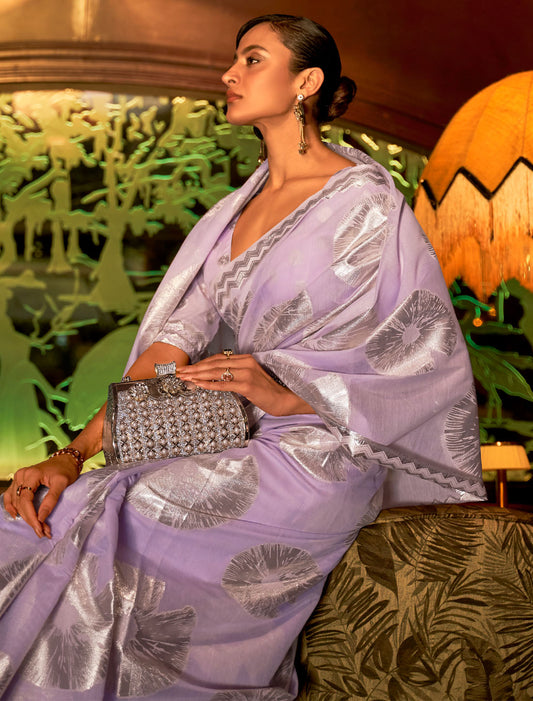Celestial Elegance Modal Flat Zari Handloom Weaving Saree