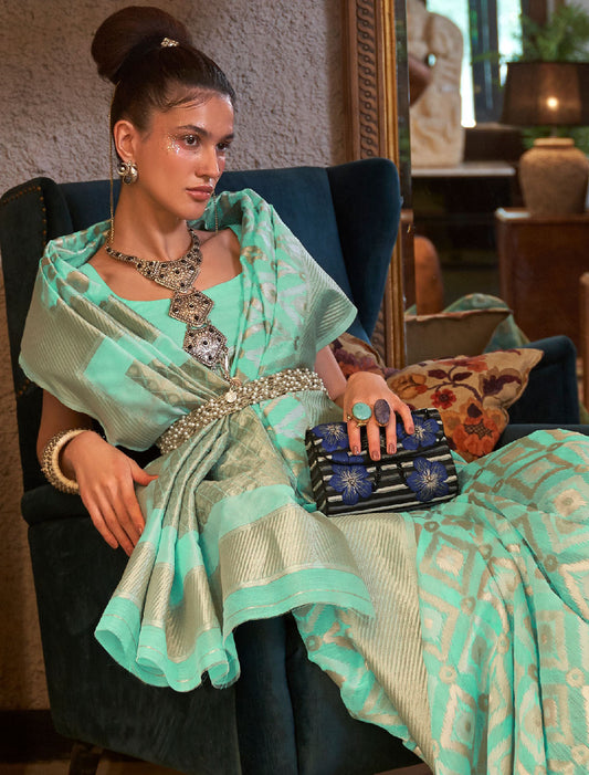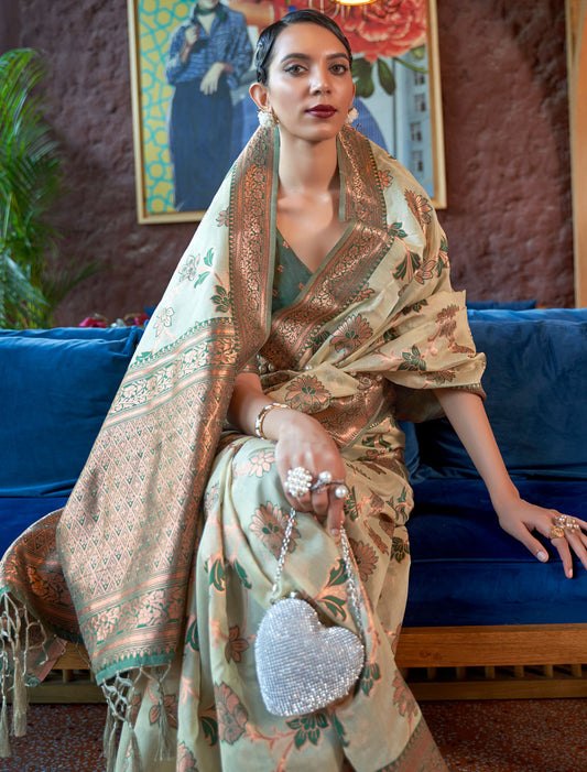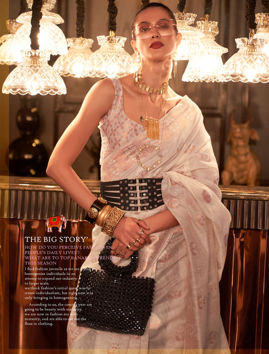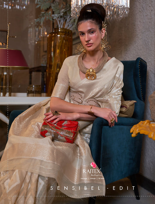 Ethereal Charm Weaving Modal Flat Zari Handloom Women Saree Extravaganza