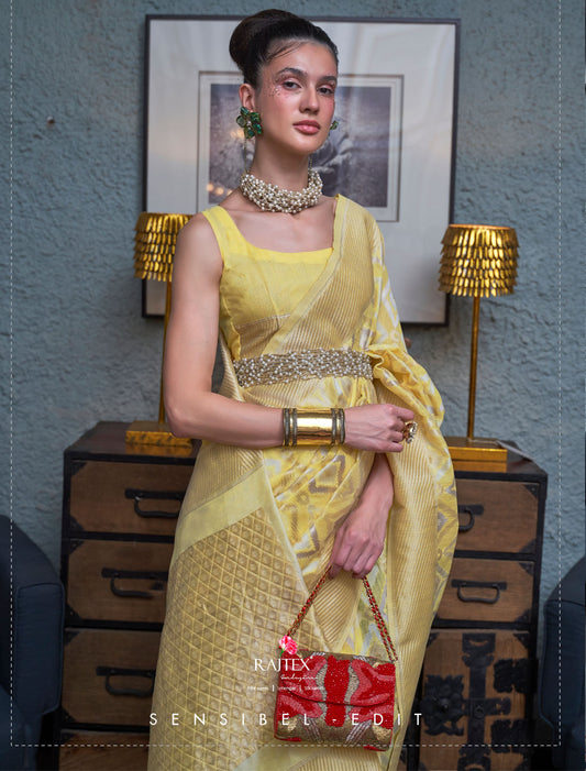 Golden Opulence Soft Silk With Banarasi Weaving Saree