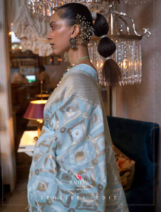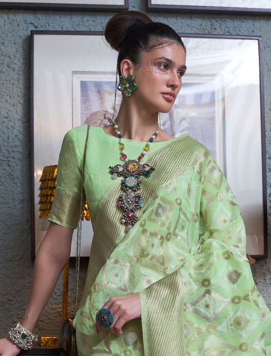 Regal Ikkat Patola Handloom Weaving Pure Linen Saree