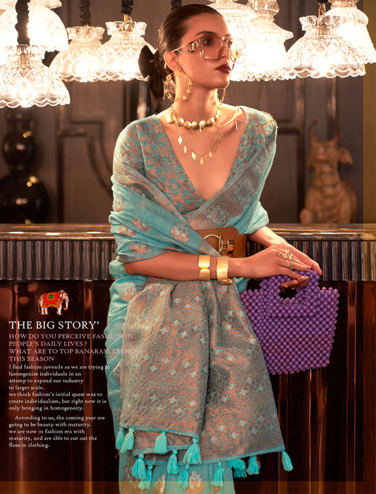 Chic Pure Linen Handloom Ikkat Patola Weaving Saree