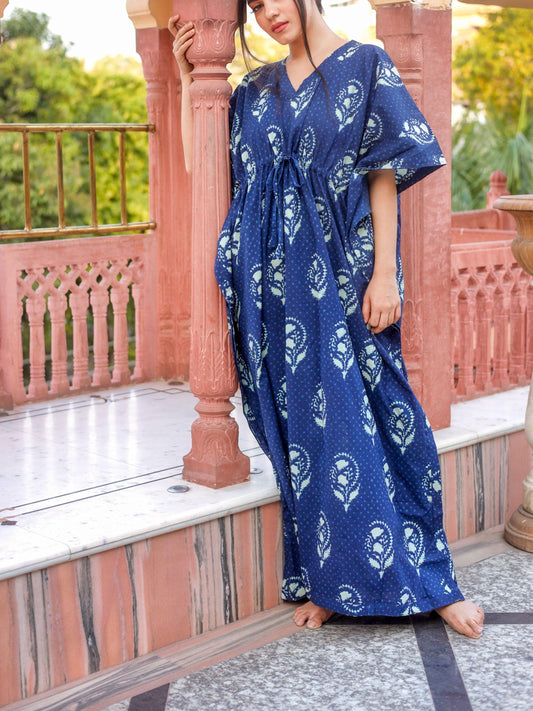-50% OFFDivena Blue Floral Cotton Kaftan