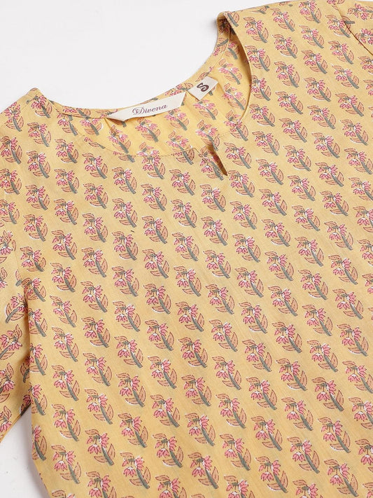 Divena Beige Floral Digital Printed Straight Fold Sleeve Kurta