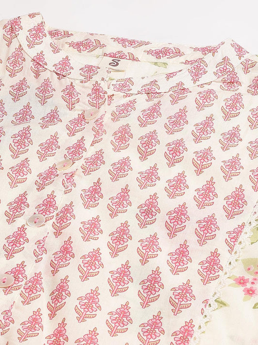 Divena Cream Cotton Yoke Work Gathered Kurta