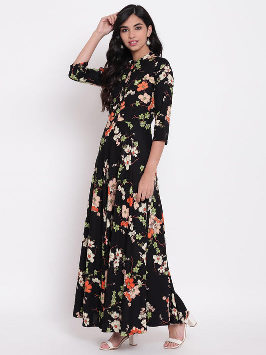 Divena black floor length rayon kurti
