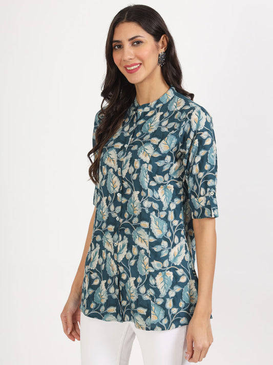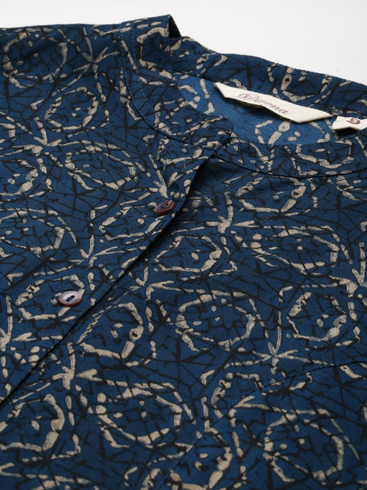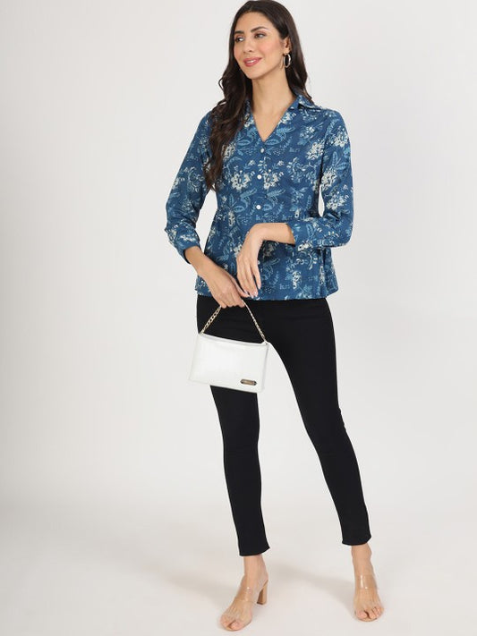 Indigo Blue Ethnic Cotton Shirt Style Casual Top