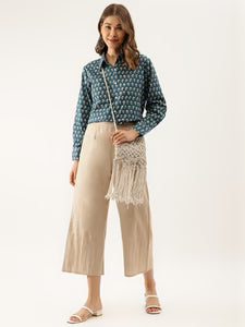 Turquoise Blue Ethnic Motif Printed Casual Full Sleeves Shirts