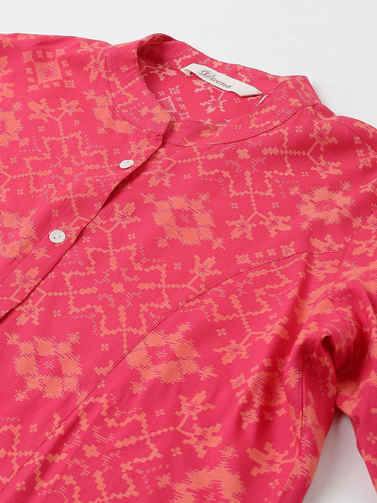 Divena Pink Abstract printed Rayon A-line Shirts Style Top