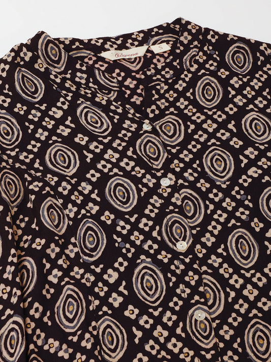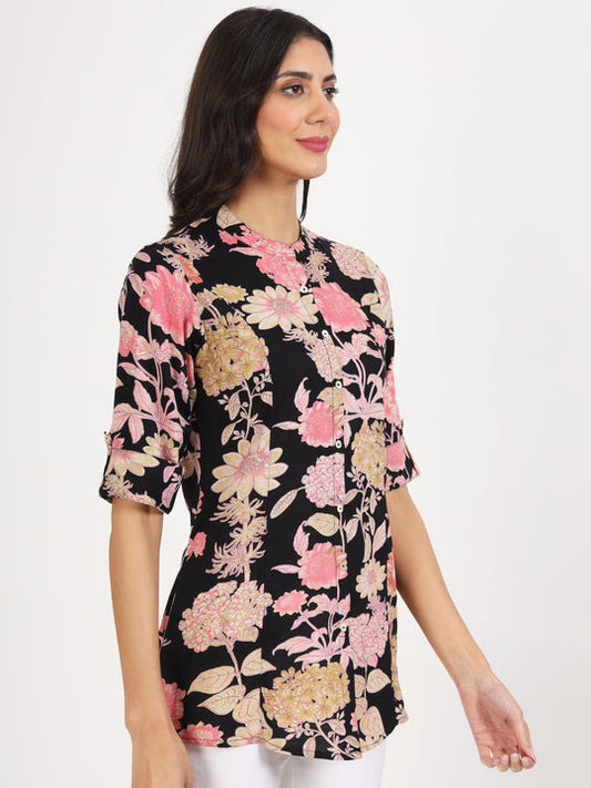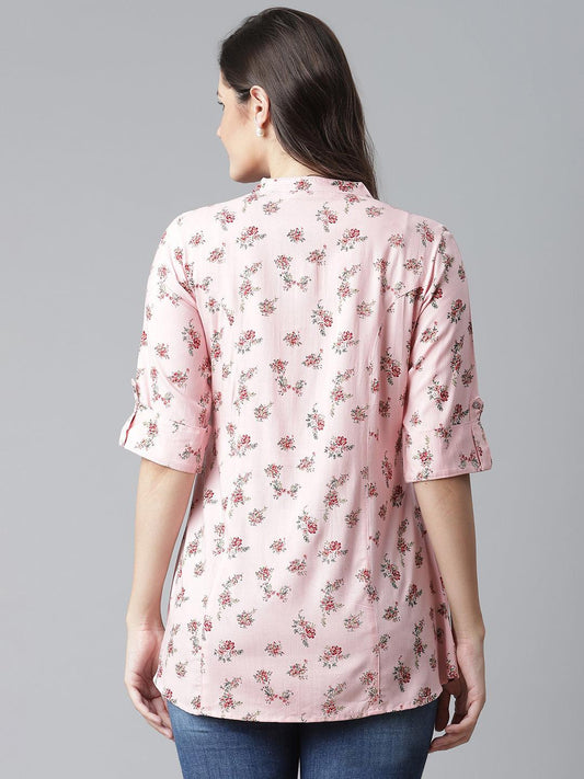Divena Pink Rayon Printed Shirt Style A-line Top