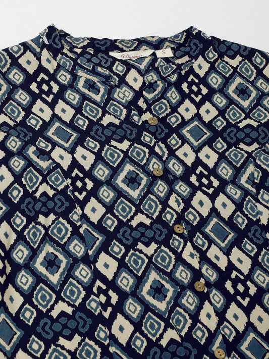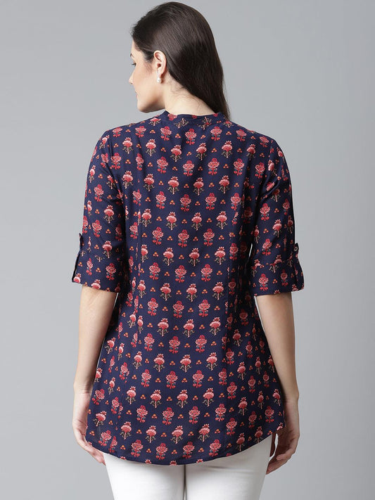 Divena Navy Blue Printed Rayon Regular Fit Top