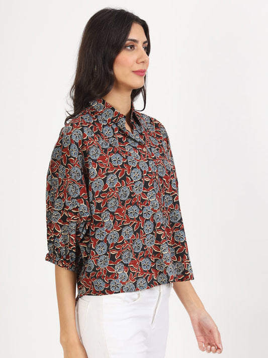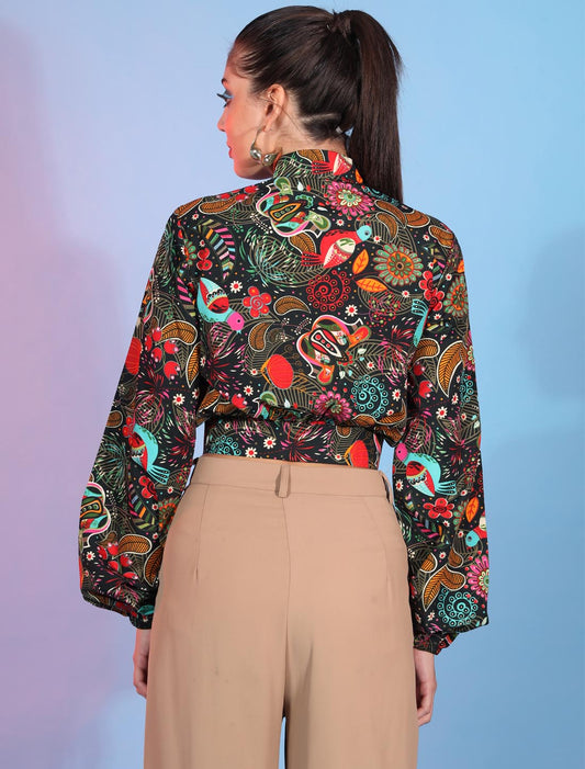 Black Ethereal Crepe Printe Work & Designer Women Top