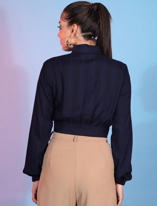 Navy Blue Enchanting Viscose Rayon Women Designer Top