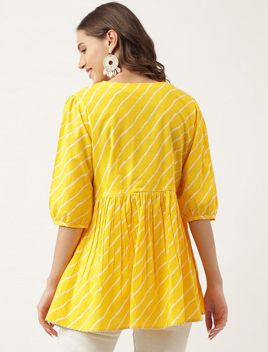 Mustard Yellow Women Striped Puff Sleeves Empire Viscose Rayon Top