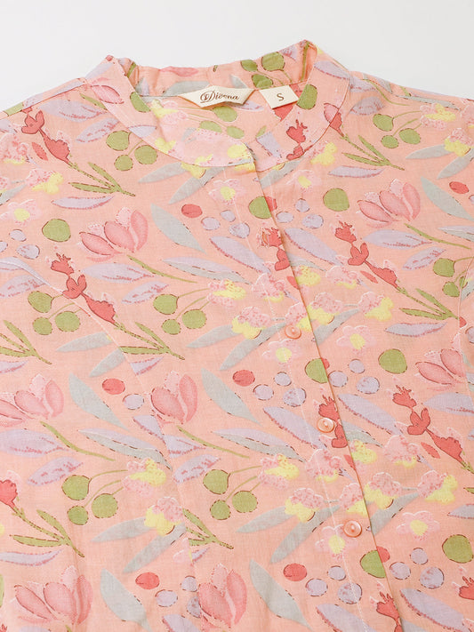 Divena Pink Multi Colored Floral print Cotton Regular Top