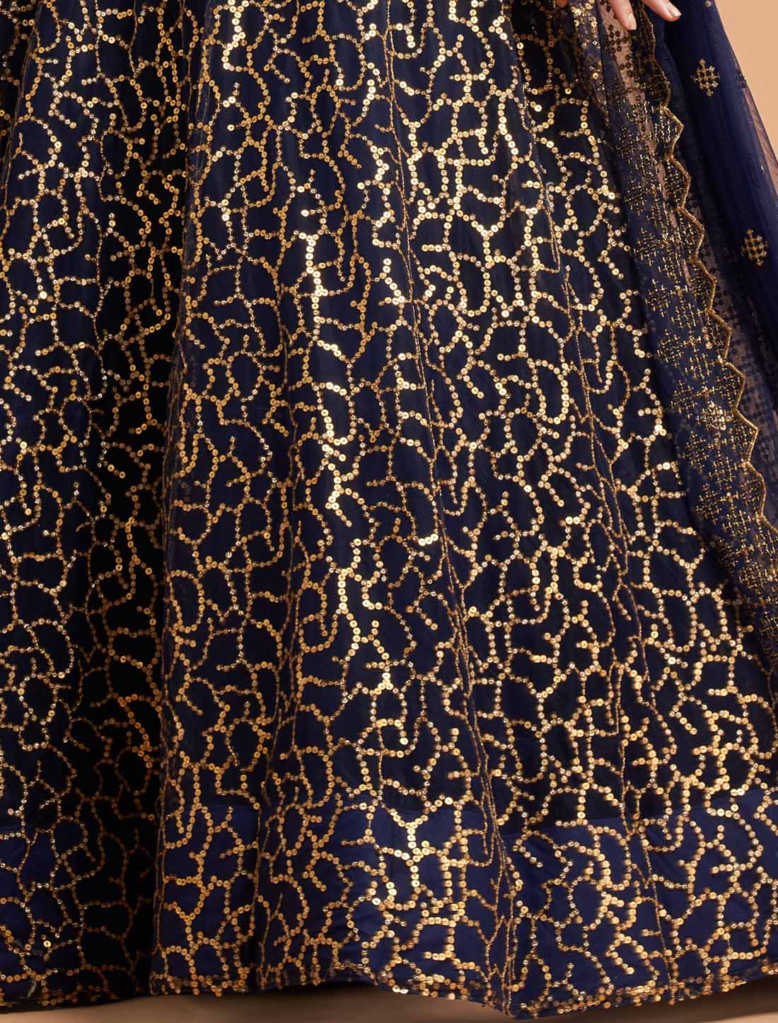 Blue Soft Net Zari Badal An Dori Thread Embroidery Ethnic Lehenga Choli