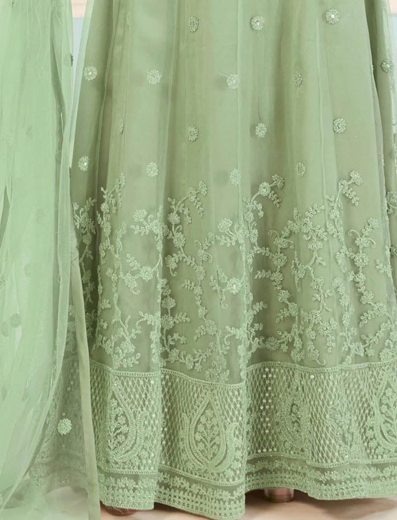 Light Green Semi Stitched Ethnic Long Salwar Kameez For Women