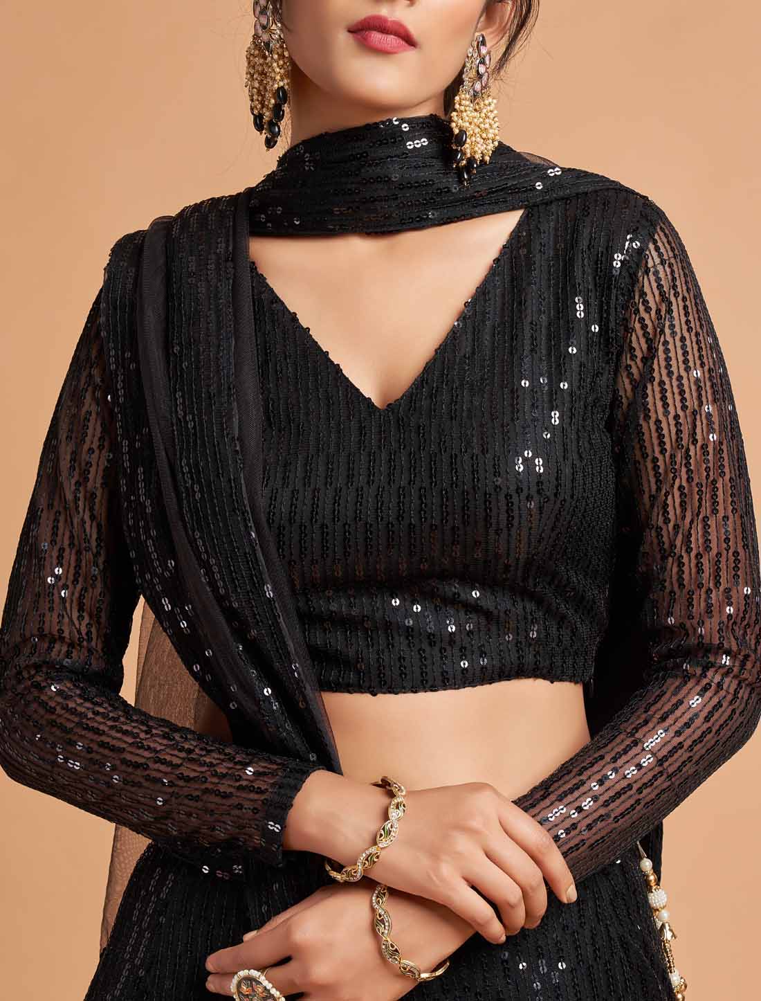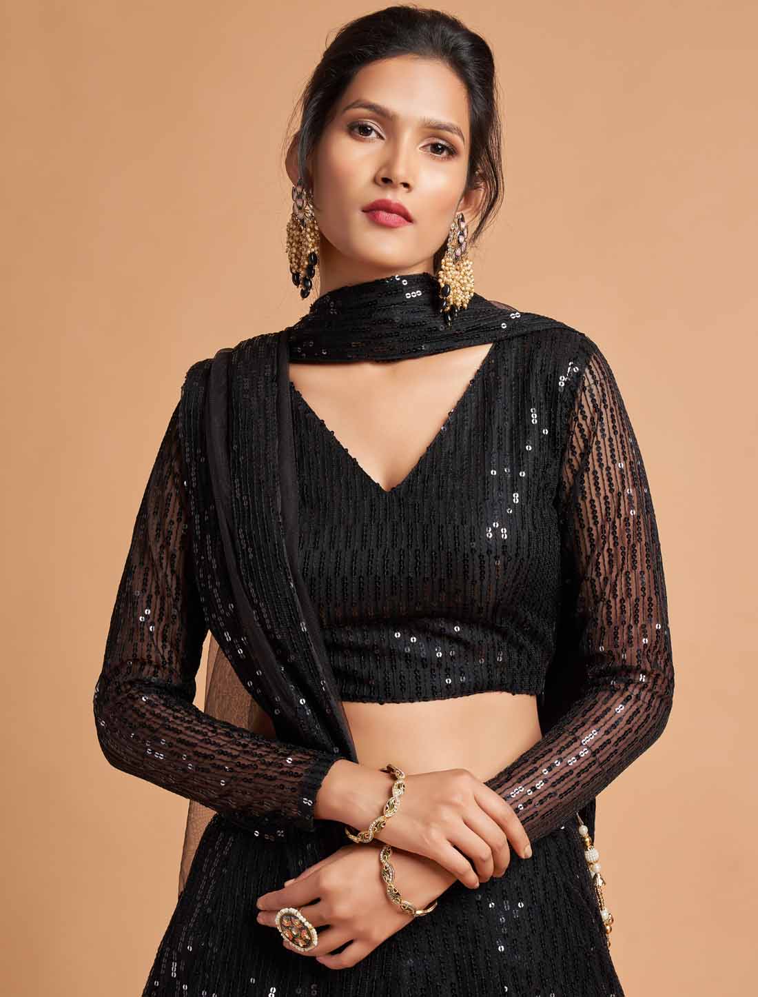Ethnic Balck Soft Net Thread Multipal Sequins Embroidery Lehenga Choli