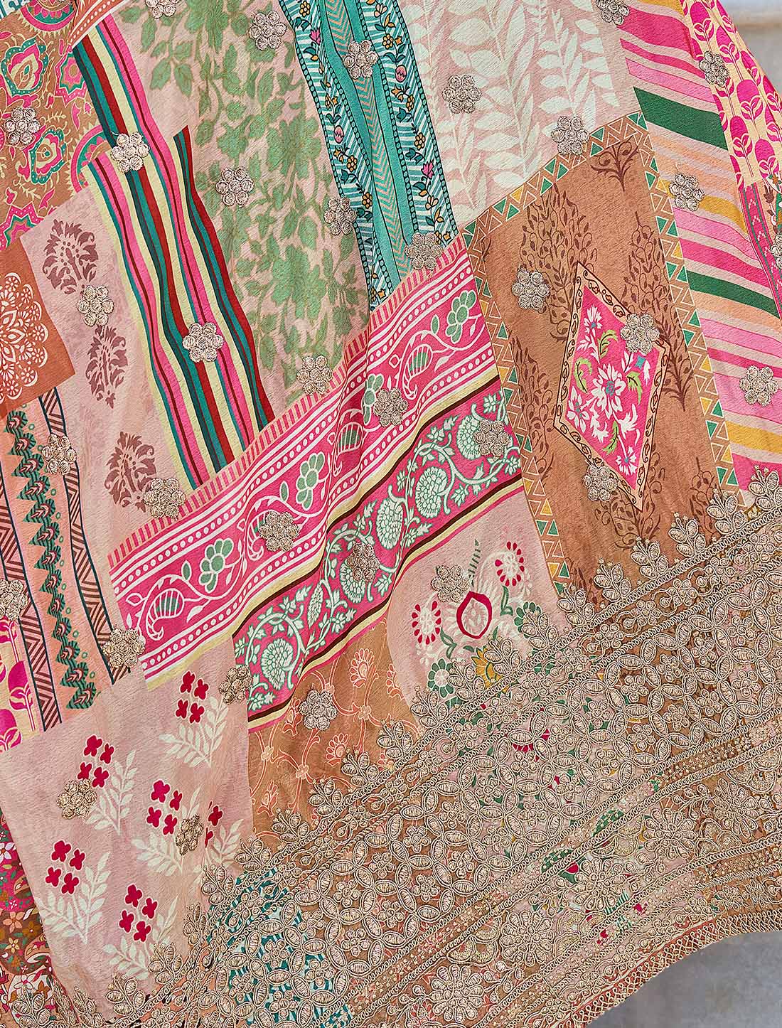 - Lehenga Choli & Blouse Fabric: Chinon Silk