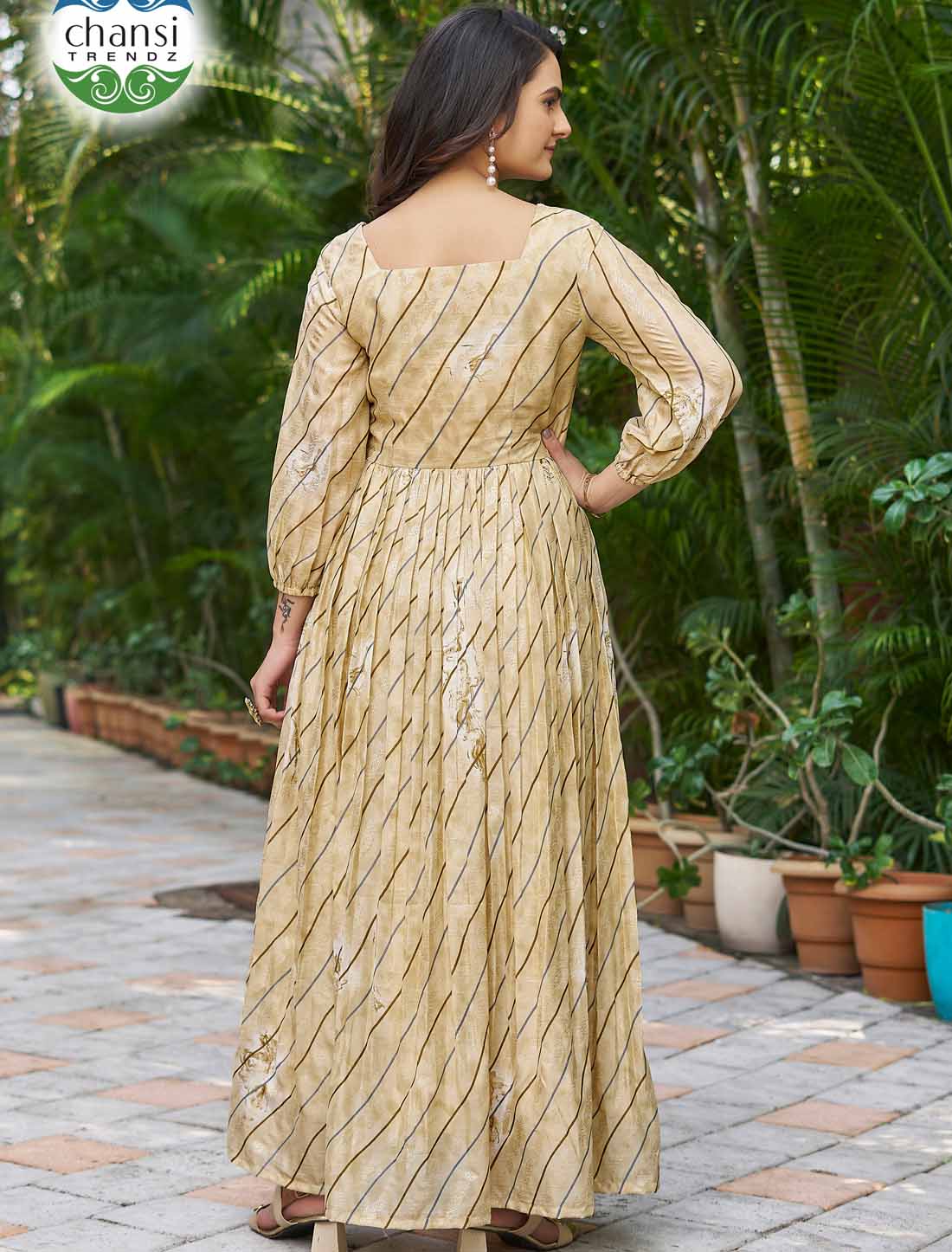 Ethnic Cream Chinon With Crepe Inner Balloon Sleeves Long Gown