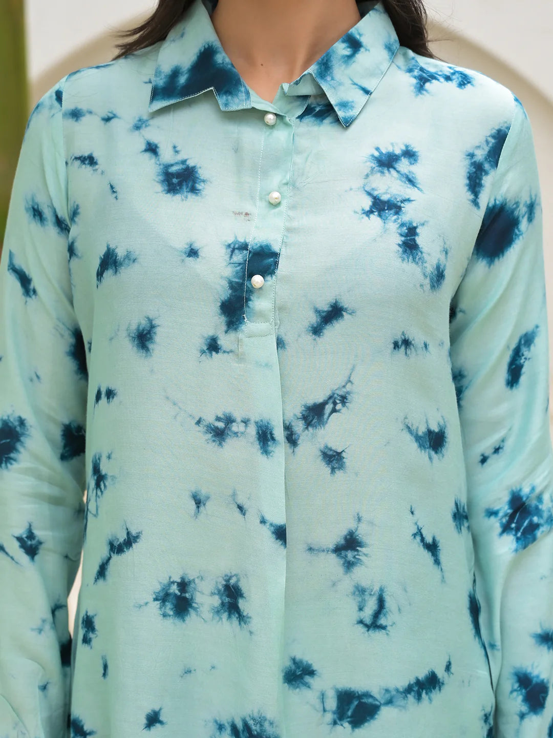 Elevate your ethnic wardrobe with our stunning Tie Dye Co-ord Sets. Crafted from premium muslin fabric, these sets feature a sophisticated shirt collar, elegant full sleeves, and a flattering straight-cut top. The artisanal tie-dye technique creates a unique pattern on each piece, ensuring you stand out at every occasion. exclusively from Befashionate.