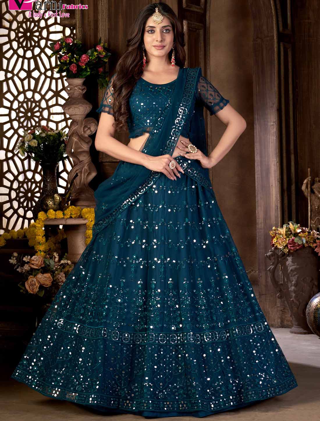 Navy Blue Net With Multi Embroidered Mirror Ethnic Lehenga Choli