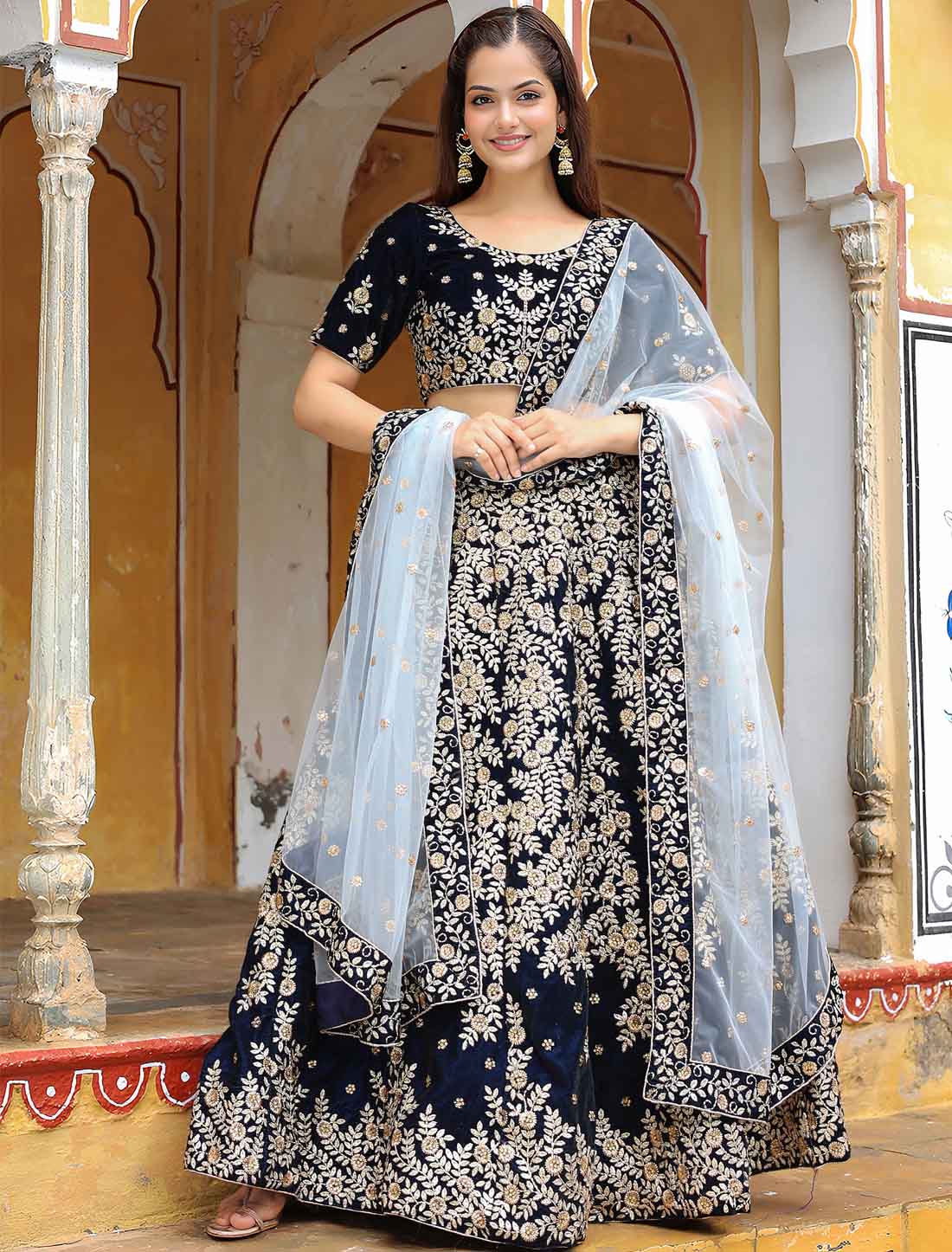 - Lehenga & Blouse Fabric: Velvet