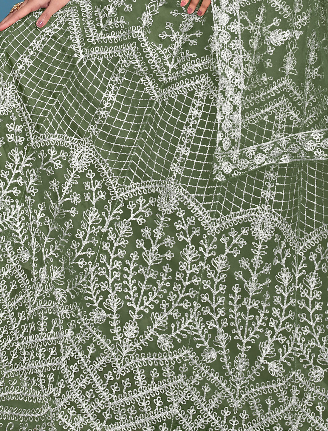 Parrot Green Ethnic Embroidered Wedding Lehenga Choli Set