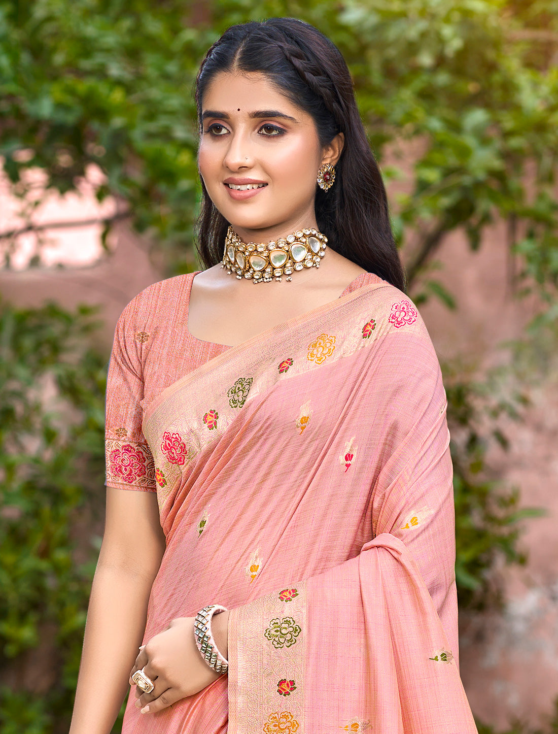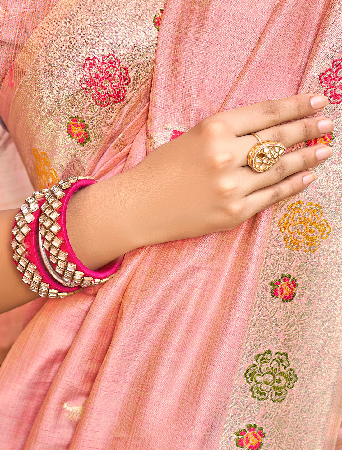 Pink Assam Silk Woven Party Wear Saree With Meena Work