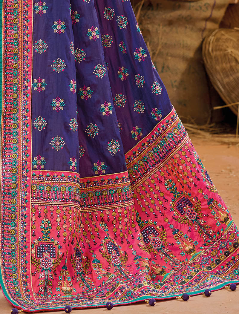 Purple Banaras Silk With Shana Silk Blouse Pure Kachhi Work An Diamond & Mirror Heavy Work Ethnic Sarees