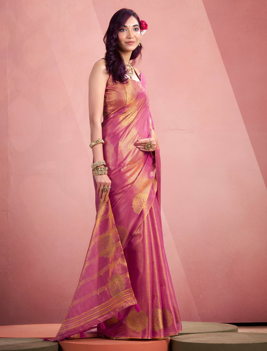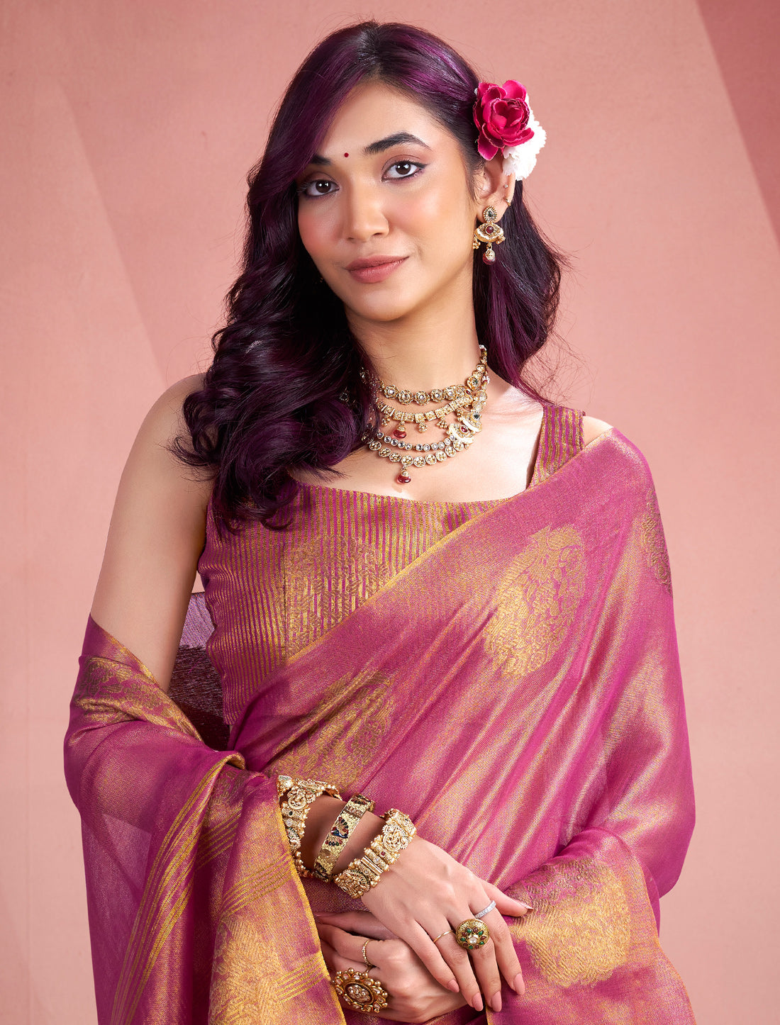 Raspberry Tissue Silk Party Wear Ethnic Woven Saree