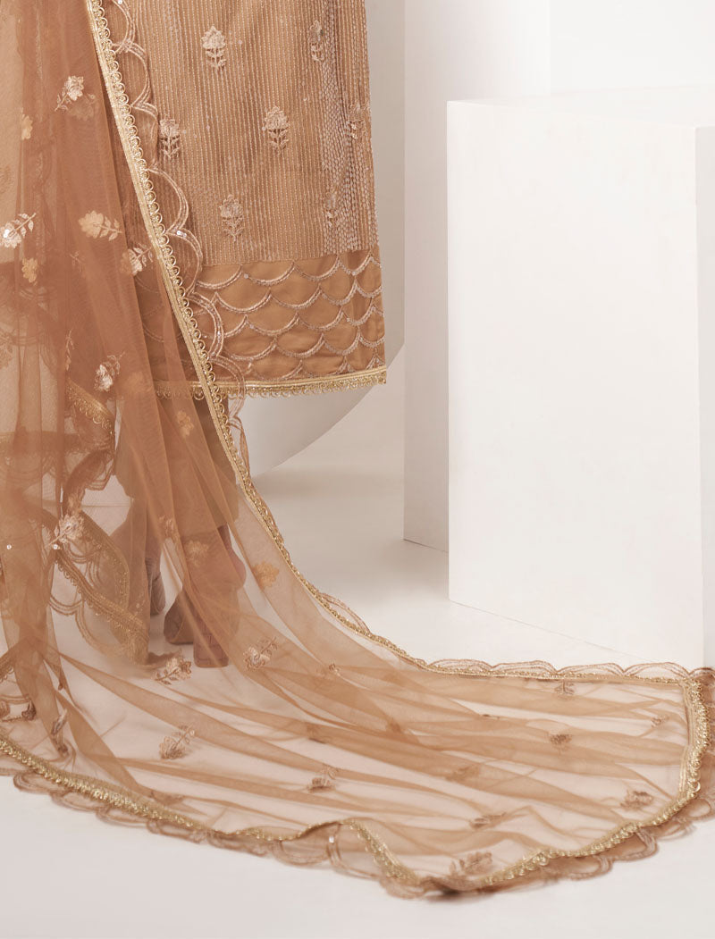 Skin Butterfly Net Semi Stitched Ethnic Salwar Suit Wtih Thread Work & Embroidery